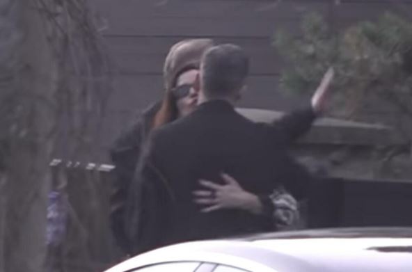 Njih dvoje uhvaćeni su tokom srdačnog pozdravljanja na ulici, a poljubac koji je pao u obraz, ispratio je i zagrljaj, a ona osmeh nije skidala sa lica.