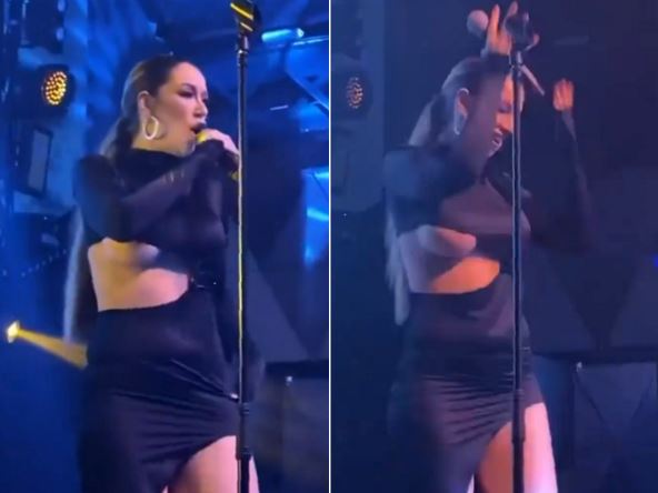 Nakon što joj je usred izvedbe numere i zavodljivog plesa ispala dojka, snimak pevačice u providnoj haljini srušio je mreže!