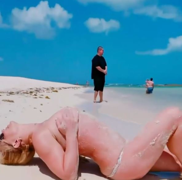 Sada je ponovo "sevnula" na ovoj društvenoj mreži, ali su pratioci, tačnije njih 4 miliona koji su kliknuli na toples Britni, bili zapanjeni muškarcem iz njenog obezbeđenja koji je sve vreme stajao iza nje i "bacao pogled" - čas na nju, čas na plivače.