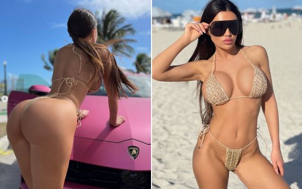 Stanija je za Instagram pozirala u maleckom, zlatnom bikiniju, koji je na zadnjici imao samo končić. Uradila je to naslonjena na automobil lamborgini urus, čija cena dostiže 300.000 evra, ali pratioci su uživali u pogledu i kada se okrenula.