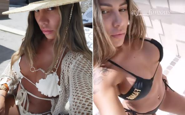 Beli bikini je upotpunila slamnatim šeširom i nakitom, a crni je jednostavno obukla "naopačke" kako bi silikoni došli još više do izražaja.