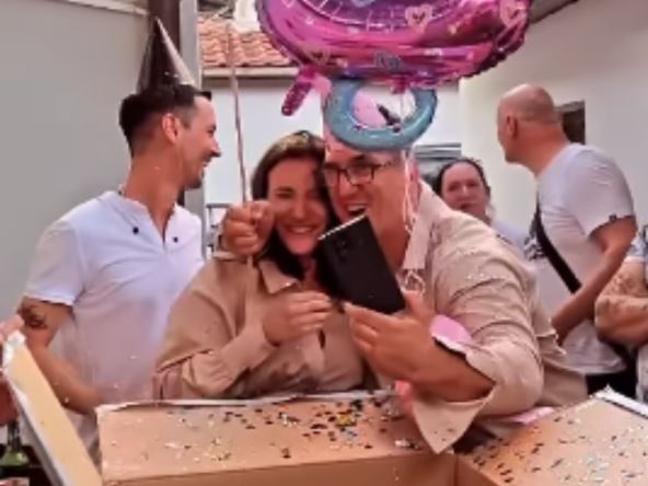 Bivši učesnici Zadruge Kristijan Golubović i Kristina okupili su svoje najmilije, pred kojima su otvorili kutiju iz koje su izleteli plavi baloni, što im je bila potvrda da je dečak na putu.