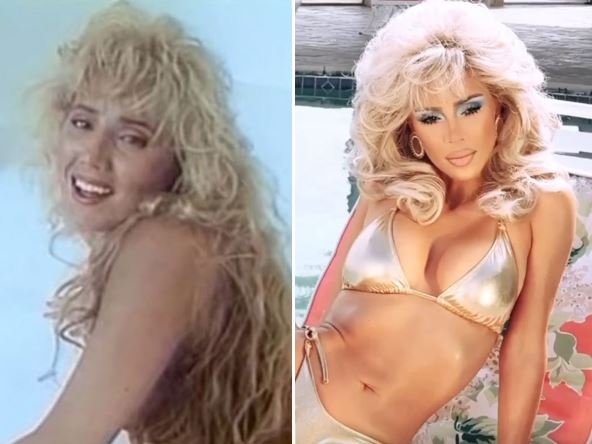 Kim u najavnim objavama ima natapiranu plavu kosu i nosi srebrne i zlatne kostime, a uz to ima i plavu senku na očima, baš u stilu Lepe Brene kada je cela Jugoslavija gledala u nju kao u ikonu i trudila se da je kopira.