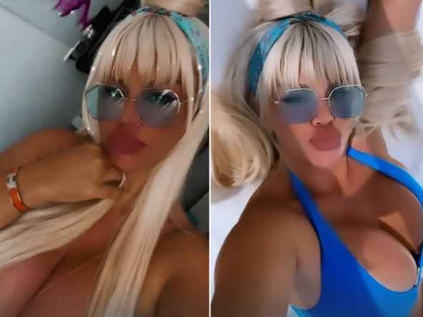 Dara se na bazenu pojavila u plavom kupaćem, s trakom na glavi i tašnom "Luj Viton" u istoj boji, a osim što je pokazala kako izgleda DJ i novu frizuru, u kadar su upale i grudi.