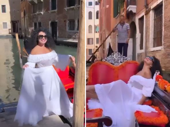 Ona se vozila u gondoli u Veneciji, dok je pozirala u beloj haljini i sa svojim pratiocima podelila čarobne kadrove. Ipak, mnogi su mišljenja da je upravo umetnik zabeležio sve i pravio joj društvo u prelepom, sunčanom danu.