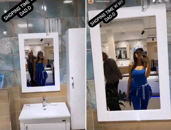 Starleta je objavila video iz prodavnice u koju je otišla s ocem, ali pratioci nisu bili u prilici da vide luster ili dvosed, već Natašu Šaviju kako se uvija pred ogledalom, dok je otac gleda. Tata je u jednom trenutku shvatio da se ćerka snima i rešio da "nestane iz kadra", a Nataši nimalo nije smetalo što je gledaju i prolaznici. Pratioci su nakon gledanja snimka izneli pregršt negativnih komentara i pitanje "kako je nije sramota da tako pozira pred ocem".