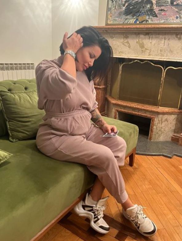Ponosna trudnica pozirala je u donjem vešu preko kog je imala samo sako. Na licu nije imala ni trunku šminke, a trudnički stomak je ponosno istakla.