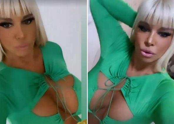Nakon što je pevačicin komšiluk otkrio da živi u penthausu vrednom 200.000 evra, da "zna da projuri kolima 200 na sat", ali je "komšinica za primer", otputovala je u Hrvatsku na zakazan nastup na kojem se pojavila u drečavo-zelenom kompletu. Pripijeni top, koji preko grudi pridržavaju samo pertle, helanke sa rupama na butinama, pratioci su imali prilike da vide pre publike.