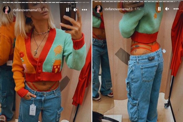 Milica je na Instagramu pitala pratioce da li bi trebalo da kupi farmerice koje je našla u jednom tržnom centru, a onda objavila fotografije iz garderobe u radnji kako bi videli i kako joj stoje. U pitanju je model niskog struka, širokih nogavica s džepovima... ali pažnja pratilaca nije bila usmerena na dužinu, širinu i kroj.