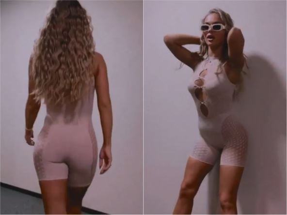 Stajling je upotpunila naočarima za sunce, a fotografije su za samo nekoliko sati prikupile više od 100.000 lajkova. Njeni mnogobrojni fanovi su joj poručili da je - "ribetina kakve nema", "bomba svršenih oblina" i da "gori", dok su hejteri komentarisali pevačicine noge.