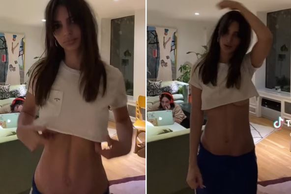 Manekenka Emili Ratajkovski, koja se pre nekoliko meseci razvela od supruga Sebastijana Bera, napravila je pometnju na društvenim mrežama zahvaljujući plesu u spuštenoj trenerci i beloj, isečenoj majici.