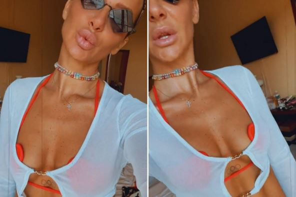 Dabovićka, koja je pre nekoliko meseci otvorila nalog na sajtu Onlifens i tako navukla gnev dela javnosti koji joj neprestano šalje uvredljive komentare na društvenim mrežama, pokazala je crveni bikini koji viri ispod isečene, bele majice, i poslala poljubac pratiocima.