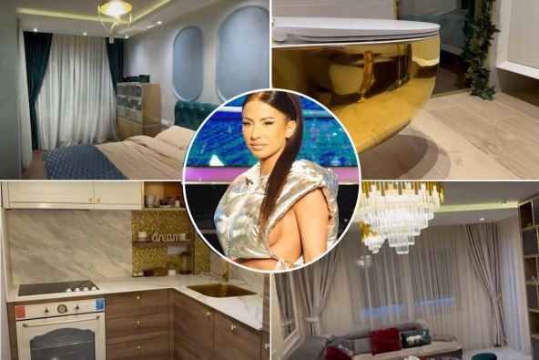 Aleksandra je sada otvorila vrata svog novog stana i pokazala kako je sredila nekretninu. Pratioci su bili u prilici da vide da u stanu dominiraju tirkizni i zlatni tonovi. Kuhinja je u braon i bež tonovima sa pozlaćenim česmama, a u kupatilu je zlatna WC šolja.