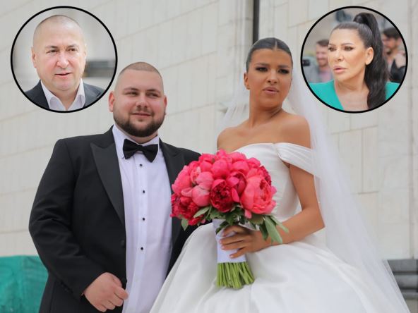 Radiša Trajković Đani i njegova supruga Slađa danas žene mlađeg sina Marka Trajkovića, a folkerova lepša polovina bila je u centru pažnje zbog izazovnog izdanja u kojem se pojavila ispred crkve.