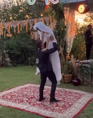 Par je blistao na venčanju organizovanom na salašu u Krčedinu, a slike i snimke glumice i atletičara izazvali su sjajne reakcije javnosti, kao i snimak na kojem Gagi Jovanović igra balet.