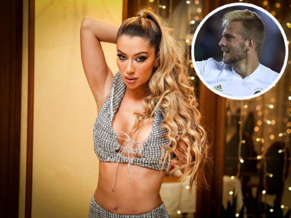 U pitanju je Uroš Račić koji je zvanično igrač Valensije. Svima je privukao pažnju položaj njegovih ruku koje je držao oko njenog struka, a pao je i sočan poljubac u obraz zbog čega su mnogi pomislili, da je mladi reprezentativac bacio oko na zgodnu pevačicu.