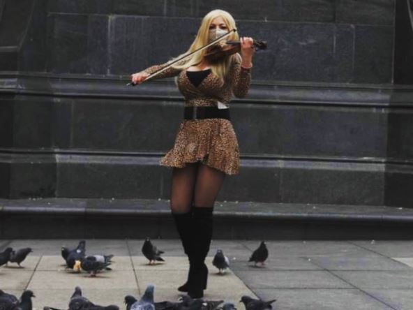Bjanka Kolompar je zagrebačka violinistkinja koja je doktorirala u Beču, a pored violine vežbala je i solo pevanje. Najveću pažnju javnosti privukla je kada je, svirajući na ulici, nosila zaštitnu masku sa verskim motivima, a ogromne sedmice uvek je isticao veoma duboki dekolte. Kako je sama priznala zbog grudi je često nailazi na negativne komentare.