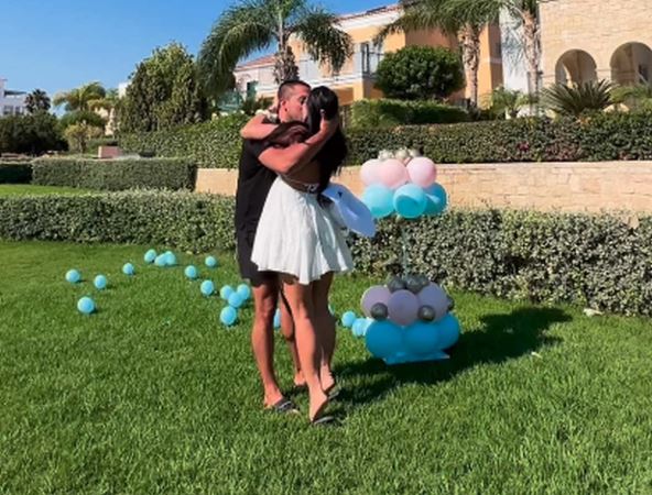 Njen partner je probušio balon, a zatim ju je zagrio i počeli su da se ljube i smeju od sreće, a čestitke im pristižu sa svih strana.