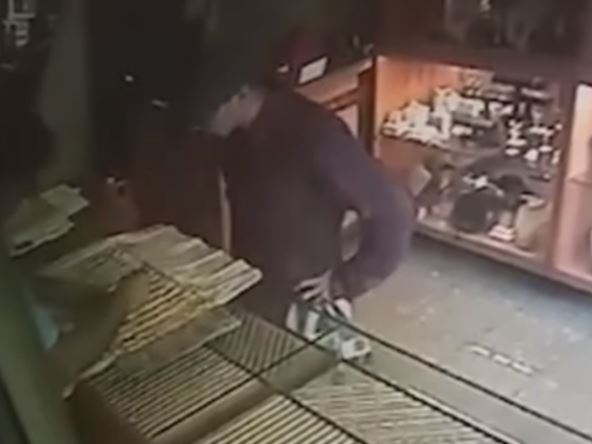 Odradio ih je prema istom scenariju i u sličnom stajling s francuskom kapicom na glavi i dioptrijskim naočarima na licu. Ono što je interesantno je da je tražio od radnika da mu pokažu zlatni nakit, a čim bi ga oni stavili na pult, osumnjičeni je čekao pogodan trenutak kada više nije bilo mušterija unutra. Zlatare je potom brže-bolje špricao suzavcem i s pulta uzeo nakit i nestao u nepoznatom pravcu odnoseći plen sa sobom.