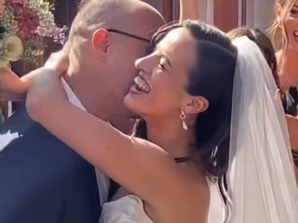 Maša je zablistala u raskošnoj venčanici čiji je šlic bio skroz do kuka, a ni ona, kao ni njen sada već suprug nisu skidali osmeh s lica.