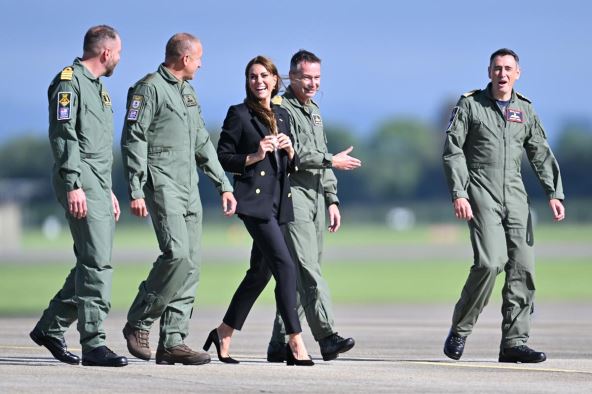 Kejt (41) je i ovom prilikom izgledala šik u tamnom odelu i visokim potpeticama, dok je kosu nosila puštenu u talasima. Sve vreme društvo su joj pravili piloti, a princeza se smejala dok je isprobavala opremu, što nije svojstveno ovakvim formalnim posetama članova kraljevske porodice.