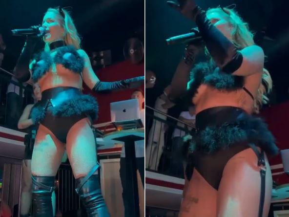 Na nastupima je neretko u minijaturnim topovima, uskim pantalonama ili suknjama sa šlicem, a ovog puta je rešila da ponese grudnjak s krznom i gaće s kaiševima i čizme...