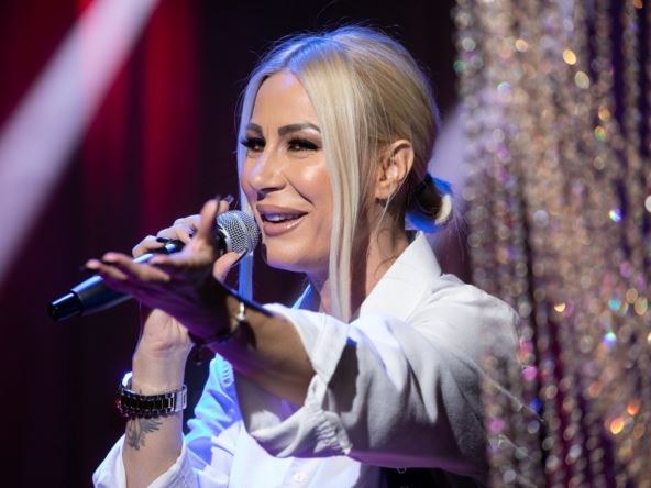 Vesna se u crnoj, kožnoj haljini dubokog dekoltea pojavila na proslavi, a kad se latila mikrofona zapevala je svoj hit "Udari živote".