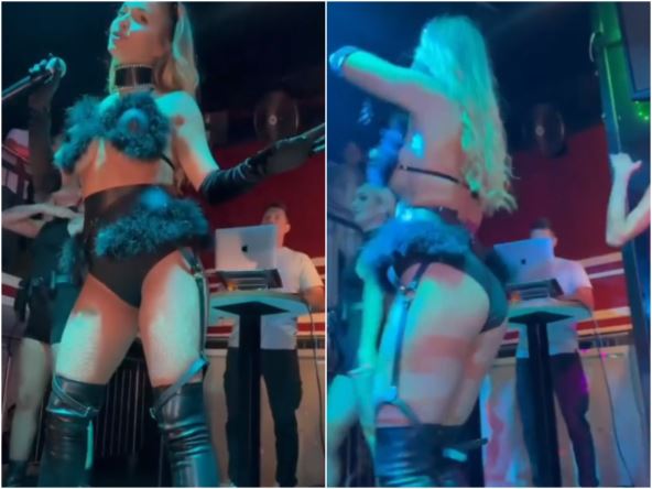 Korisnici društvenih mreža su kostim "opisali kao onaj iz filmova za odrasle" - špicasti gornji deo sa sve plišanim ukrasnim detaljima, minijaturne gaćice sa istim plišom... Kada je podigla ruke, sevnule su i gole grudi, a kameri odozdo ništa nije promaklo.
