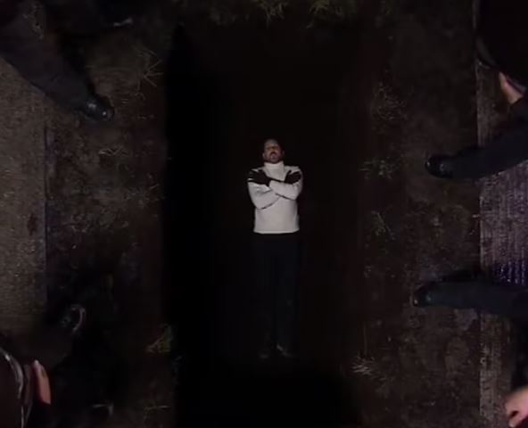 U emisiji koja je išla uživo, Dajnamo je legao u raku, nakon čega je zatrpan s pet tona zemlje. Imao je tri minuta da se izbavi i... uspeo.