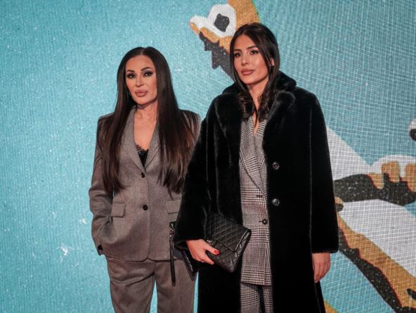 Pevačice su crvenim tepihom prošetale u identičnim kombinacijama - sivkastom odelu, dok je Anastasija preko njega nosila crnu bundu.