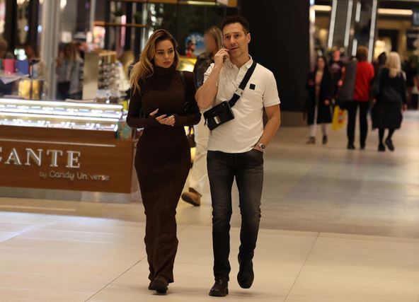 Par se sve vreme držao za ruke, bio zagrljen tokom šetnje i razgledanja izloga, a u prvom planu je bila Jovana, obučena u usku, braon haljinu i ravne čizmice, i nosila malu torbu marke "Dolce i Gabana".