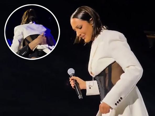 Atmosferu je i ovoga puta dovela do usijanja, a onda je iznenadila sve u publici. U jednom trenutku odlučila je da se spusti sa bine i stane među publiku, a dogodila joj se i mala nezgoda. Dok je još bila na pozornici publika je primetila da su joj pukle pantalone vredne 350 evra.
