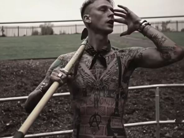 Kontorverzni panker Mašin Gan Keli, izgleda da više ne zna šta će od sebe. On je celo telo prvo prekrio mnogobrojnim tetovažama, a sada je preko svega toga u predelu grudi, ramena i vrata obojio u crno, ostavivši krst po sredini, i vidljive pređašnje tetovaže na stomaku.