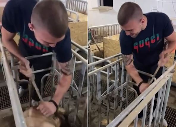 Ražnatović je ušao u svinjac i češkao "Dragoljuba" obučen u majicu brenda "Gucci", a potom snimak objavio na svom Instagramu.