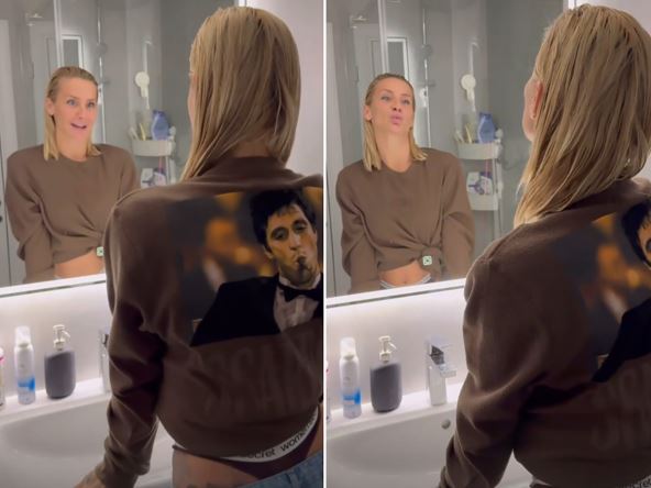 Za ovu priliku odabrala je izazovnu kombinaciju - lepršavu haljinu koja je preko grudi imala samo jednu traku. Milica je zapalila mreže snimkom u kojem pleše i jedva drži tkaninu, dok je sada otišla "korak dalje" i pokazala donji veš. Na svom Instagramu objavila je video u kojem se nameštala ispred ogledala, potpuno obučena, dok svima za oko nisu zapale tange.
