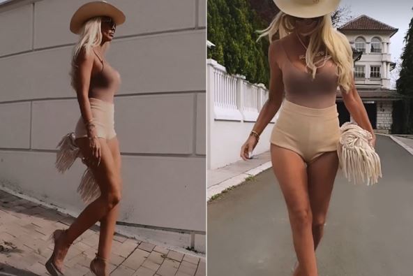 Pevačica je na svom Instagram storiju otkrila da je za šetnju odabrala šorts koji jedva pokriva zadnjicu, ali i vrtoglavo visoke potpetice. Odeću bež tonova uklopila je sa šeširom, a o njenoj spretnosti na štiklama, suvišno je govoriti nakon gledanja ovog snimka: