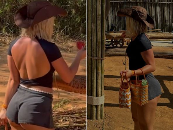 Iako je na sebi nosila "više odeće nego inače" i bila u poseti rezervatu gde je hranila slonove, njeni atributi su opet došli do izražaja. Ema je na sebi imala šorts iz kojeg je virila zadnjica što su pratioci prvo primetili!