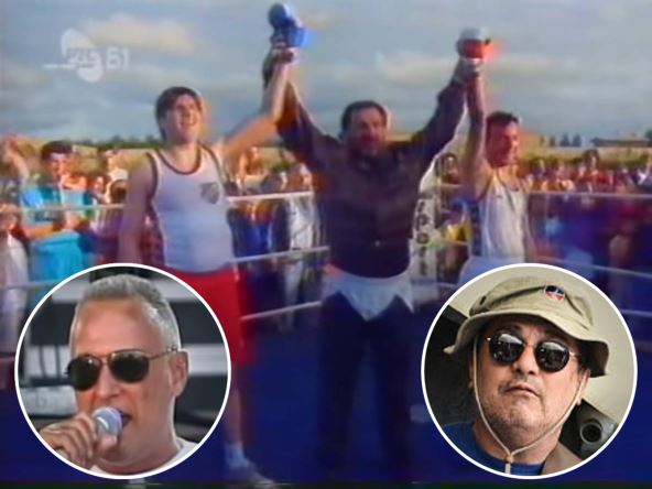 Ovaj neverovatni i spektakularni događaj odigrao se na stadionu FK Železnik, 1997. godine. Organizator je bio tadašnji predsednik FK Železnik Jusa Bulić, povodom ulaska kluba u prvu ligu tadašnje države. Meč je gledalo nekoliko hiljada ljudi. Pored Ramba i Tonija, učešće su uzeli još dvojica pevača, ali i velikih beogradskih mangupa i šmekera starog kova. Oliver Mandić kao Tonijev sekundant, te Dušan Prelević Prele, kao sudija u ringu, a izveštaj sa ove bokserske revije prikazan je na prvom programu tadašnje RTV Beograd.
