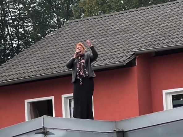 "Našalila sam se da nije ni iz kamiona, Hamera, Bube, već sa terase. Otpevala sam pesmu 'Srpkinja je mene majka rodila', pozdravila ljude, zahvalila im se i rekla da moram da siđem jer nema ograde, da se ne bi ne daj Bože nešto desilo, zanese se čovek. Oni su se smejali ja sam sišla, vratila se nazad i nastavila svoj program".