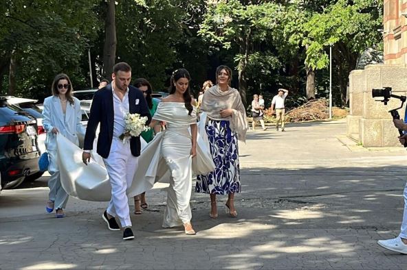 Voditeljka se pojavila sa cvećem u kosi, u beloj uskoj venčanici i sve zasenila lepotom, dok je njen budući suprug pored nje blistao u elegantnom odelu.