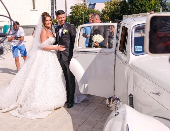 Naime, Tamara Milutinović danas pravi drugi deo svadbe u Valjevu, a njena prijateljica pokazala je da pevačicu i fudbalera prate skupi automobili.