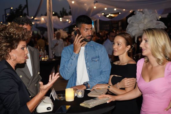 Novak i Jelena uslikani su sa prijateljima u opuštenom ambijentu u iščekivanju početka koncerta svetske zvezde - Nika Kejva, koji se održava u okviru River Festa. Dok se Nole opredelio za teksas košulju ispod koje je nosio belu majicu, Jelena je bila u crnom sa golim ramenima, a kosu je stilizovala u nisku punđu.