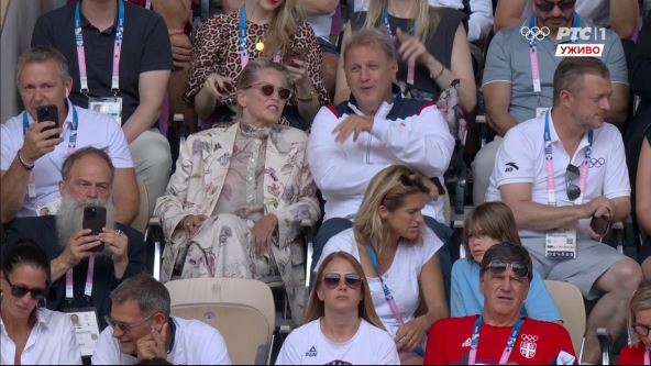 Na tribinama je tako "uvaćena" i glumica koja je devedesetih zavel svet scenom bez donjeg veša u "Niskim strastima" i koja je pre nekoliko nedelja zapalila Instagram toples fotkom - glumica Šeron Stoun.