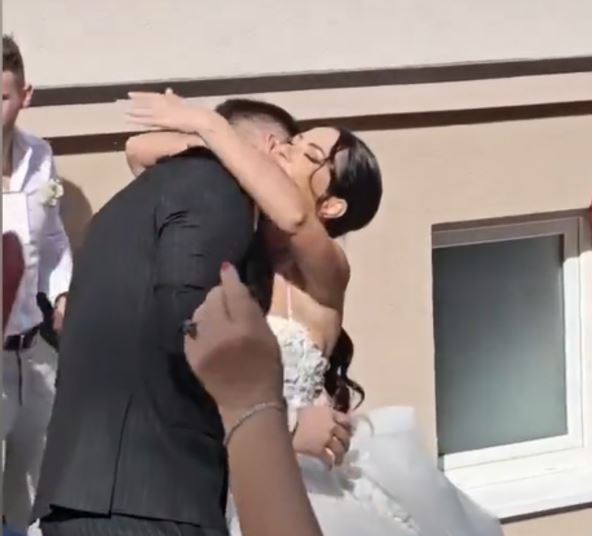 Kada se slavlje usijalo, u salu je uneta torta koja je bila skoro do plafona, a mlada se potom presvukla u minić i zabavljala sa suprugom i svatovima.
