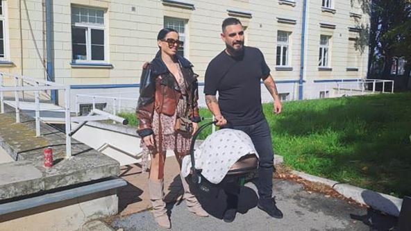 Darko Lazić i njegova supruga Katarina izašli iz porodilišta sa bebom Srnom Izvor: Kurir