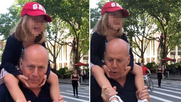 Ema Heming Vilis (46), supruga glumca Brusa Vilisa (69), na Instagramu je objavila emotivan video supruga s njihovom najmlađom ćerkom Evelin. Brus je ćerkicu nosio na ramenima i šetao se s njom po Menhetnu, a devojčica je uživala i smejala se.