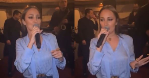 Aleksandra Prijović bila je jedna od najzapaženijih zvanica na slavi kod Lepe Brene, naročito kada se latila mikrofona i dovela atmosferu do usijanja.