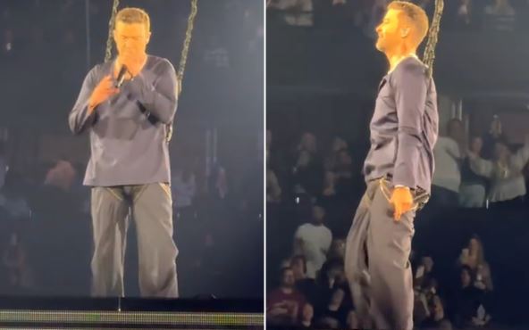 Pevač Džastin Timberlejk napravio je pometnju kada je na koncertu u Nešvilu rešio da stavi sigurnosne pojaseve kako bi mogao da izvodi akrobacije po bini i iznad nje.