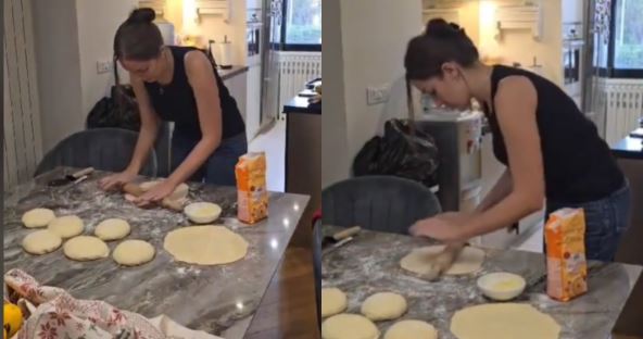 Ona je mesila pogače za Božić, a pratiocima je ujedno i čestitala praznik.