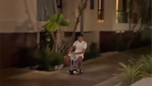On se vozio na koferu ispred ulaza u hotel, a to je nasmejalo mnoge. Čini se da se Viktor odlično zabavljao, kao i autor snimka dok ga je gledao i snimao.